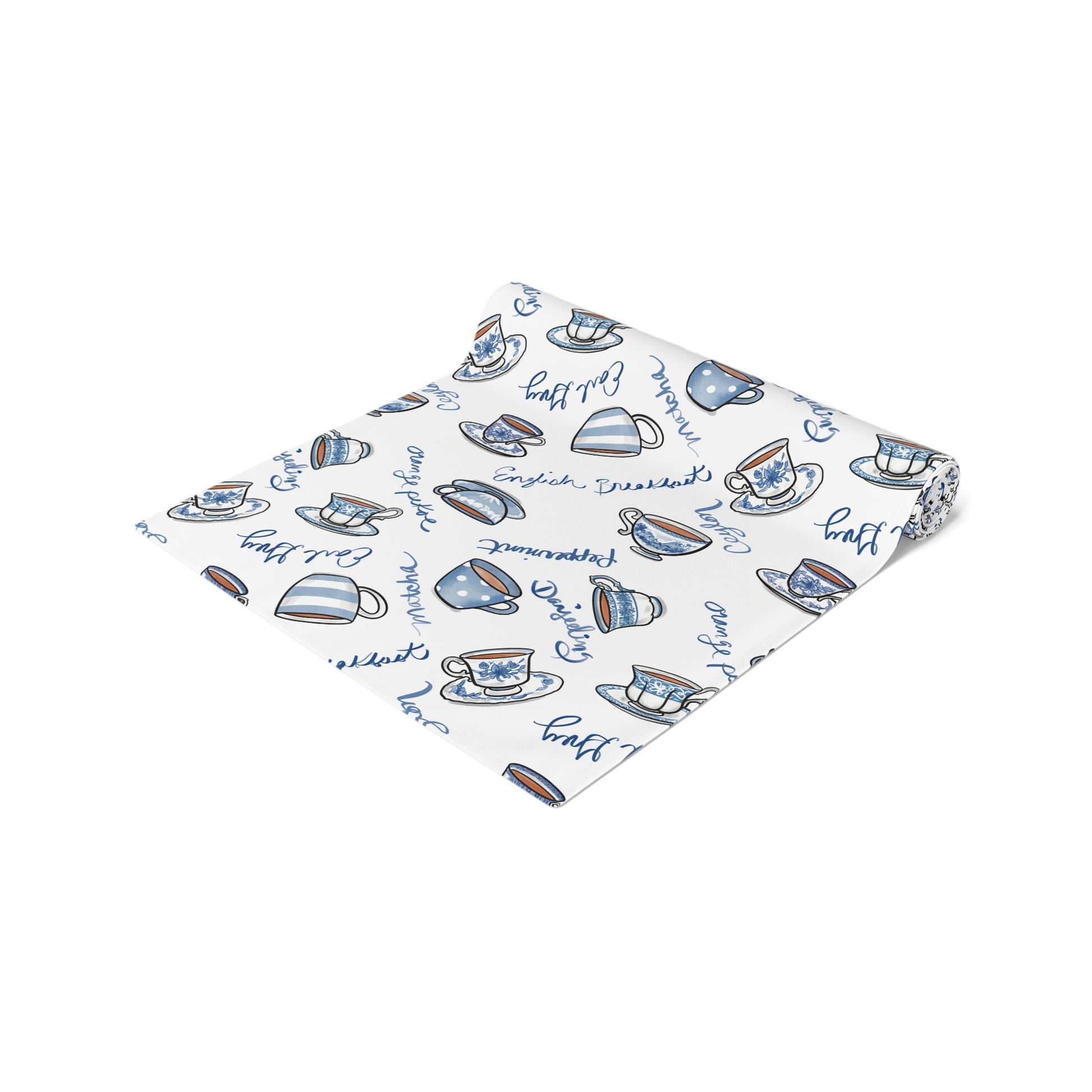 Blue and White Cups Table Runner