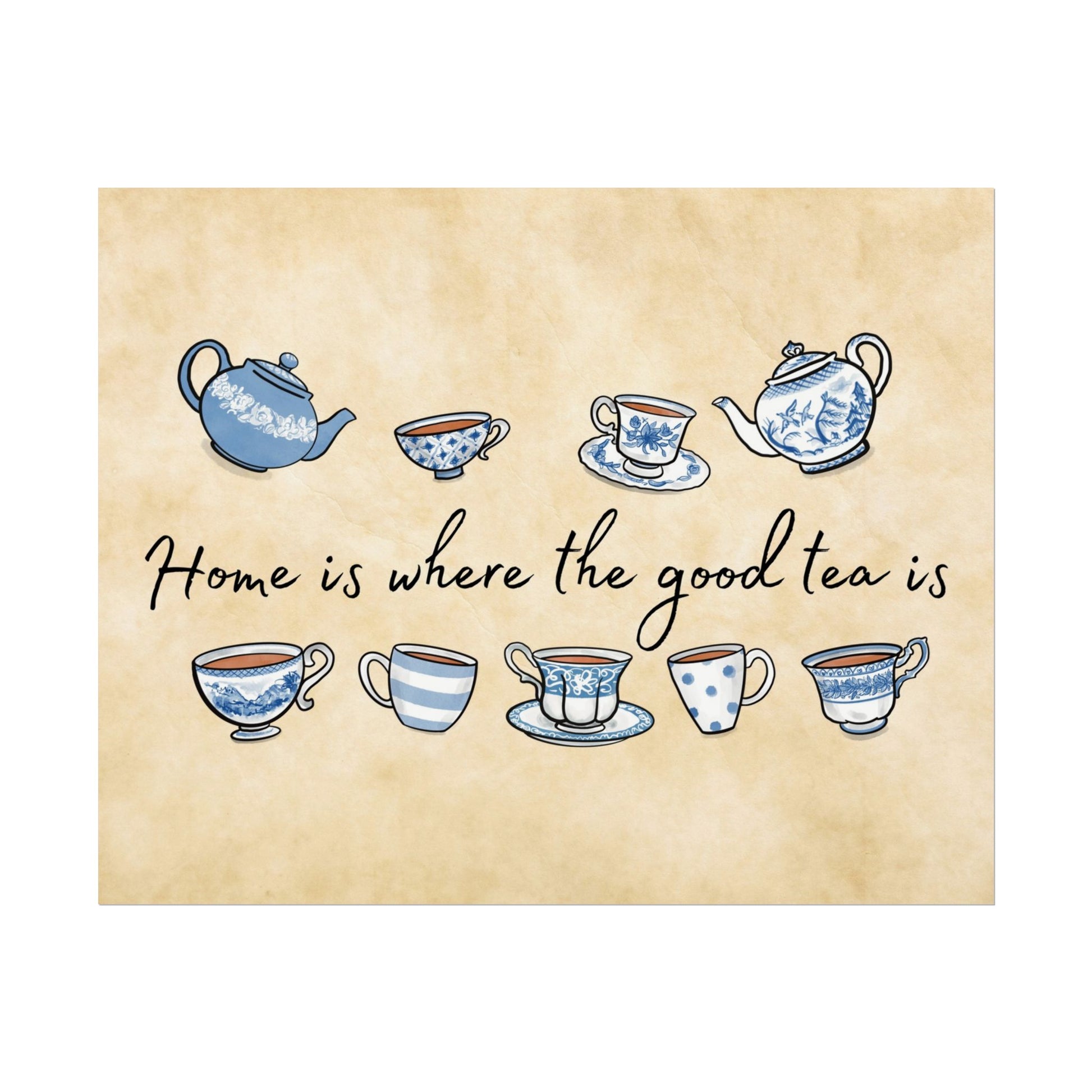 "Home is where the good tea is" Blue and White Print