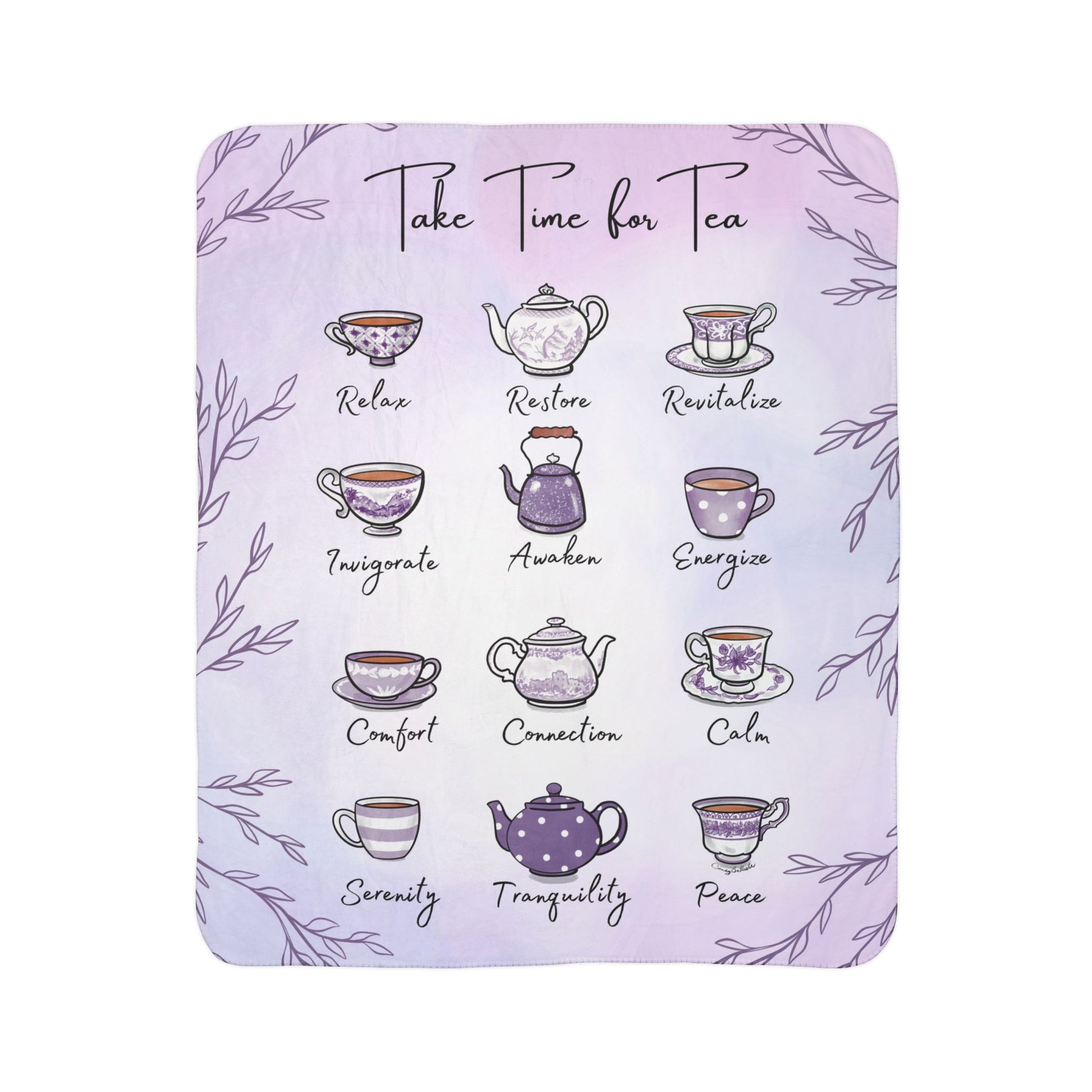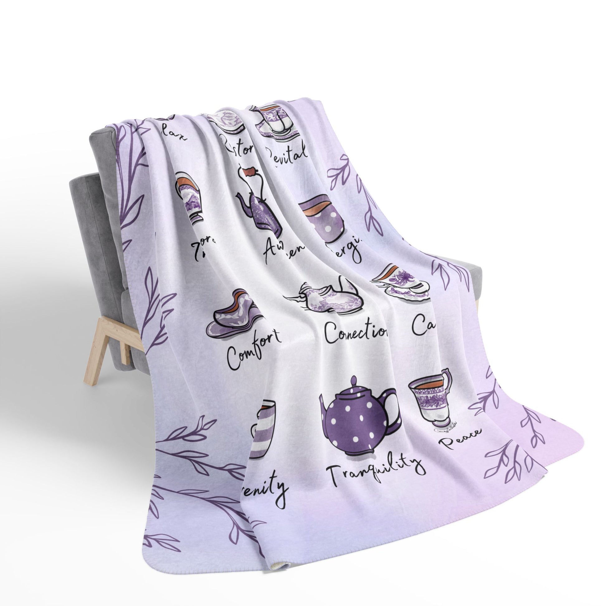 My Hand drawn lilac teacups design reminds of all the reasons we love how tea makes us feel. This soft relaxing design is a lovely accent for your living room or reading nook. These fleece sherpa blankets are super soft and perfect for snuggling up with a cup of tea. The blanket would make a beautiful gift for a tea lover as well.