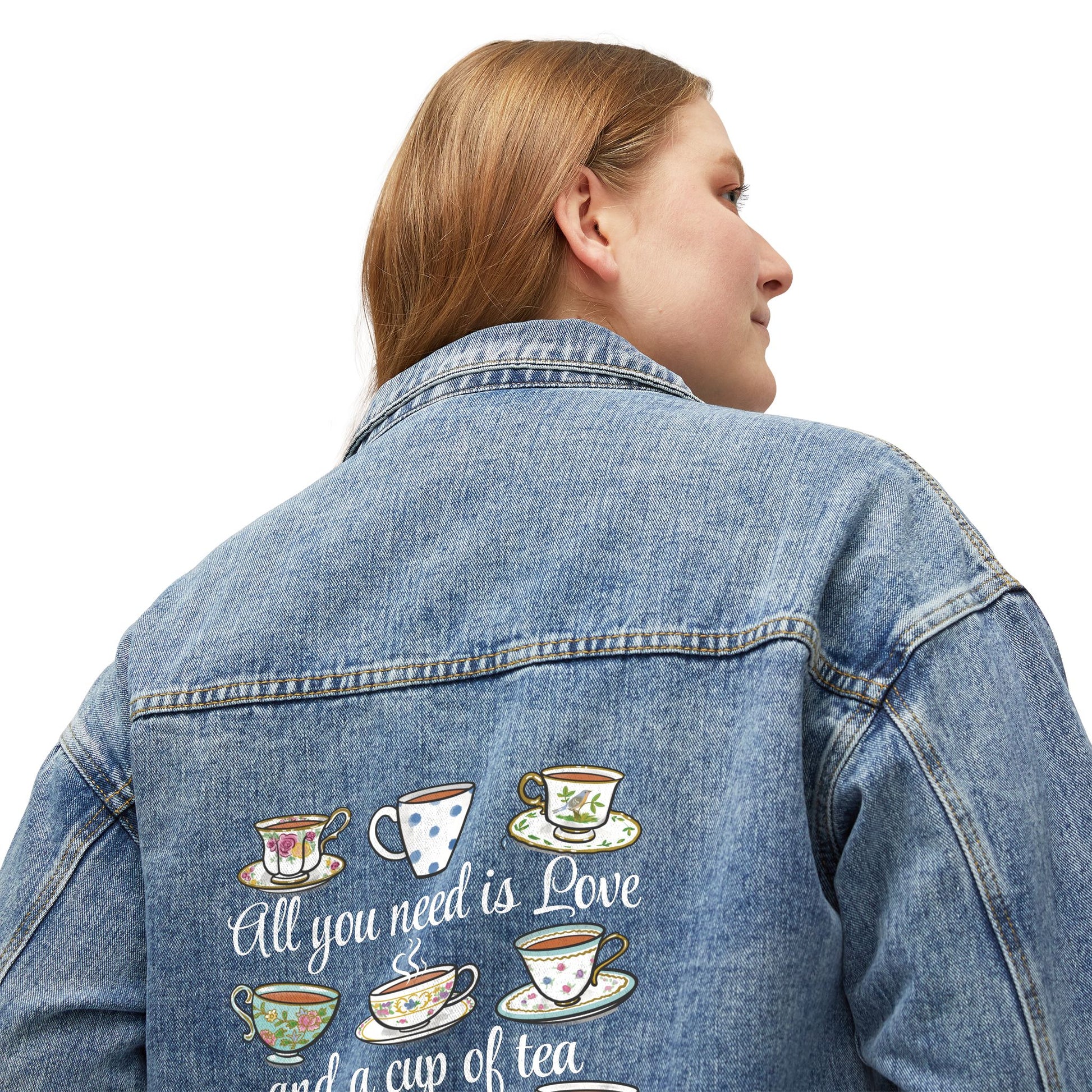 Brighten your day with this cheerful tea lover's denim jacket! With its relaxed, oversized fit and hand drawn teacups, this jacket is perfect for layering over any outfit, adding a touch of casual elegance to your wardrobe. The classic lapel collar and metal button closure provide a timeless vibe, making it an ideal choice for both daytime outings and evening events. Large front pockets and chest pockets not only enhance its aesthetic appeal but also offer functional storage for your essentials. Whether you're hitting a coffee shop, heading to a weekend festival, or enjoying a cozy get-together with friends, this jacket complements your lifestyle seamlessly. It’s a perfect gift for birthdays or as a thoughtful gesture during the holiday season, bringing joy and versatility to the fashion-savvy individuals in your life.