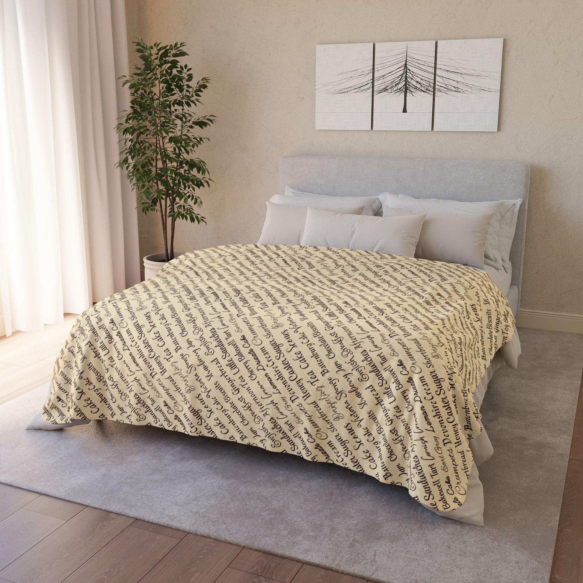 A design celebrating all the comforting and delicious treats traditionally enjoyed with tea on a soft cream background - a perfect acccent for any decor. These fleece sherpa blankets are soft and warm. They are perfect for snuggling up with a cup of tea or adding a touch of comfort to your living room decor. A perfect birthday, housewarming or seasonal gift for any tea lover!